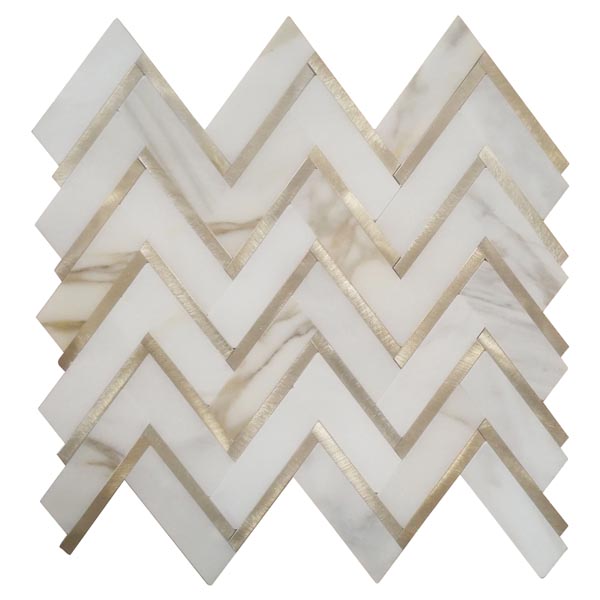 Calacatta Gold With Golden Metal Waterjet Mosaic