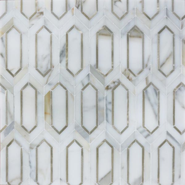 Calacatta With Golden Metal Waterjet Mosaic