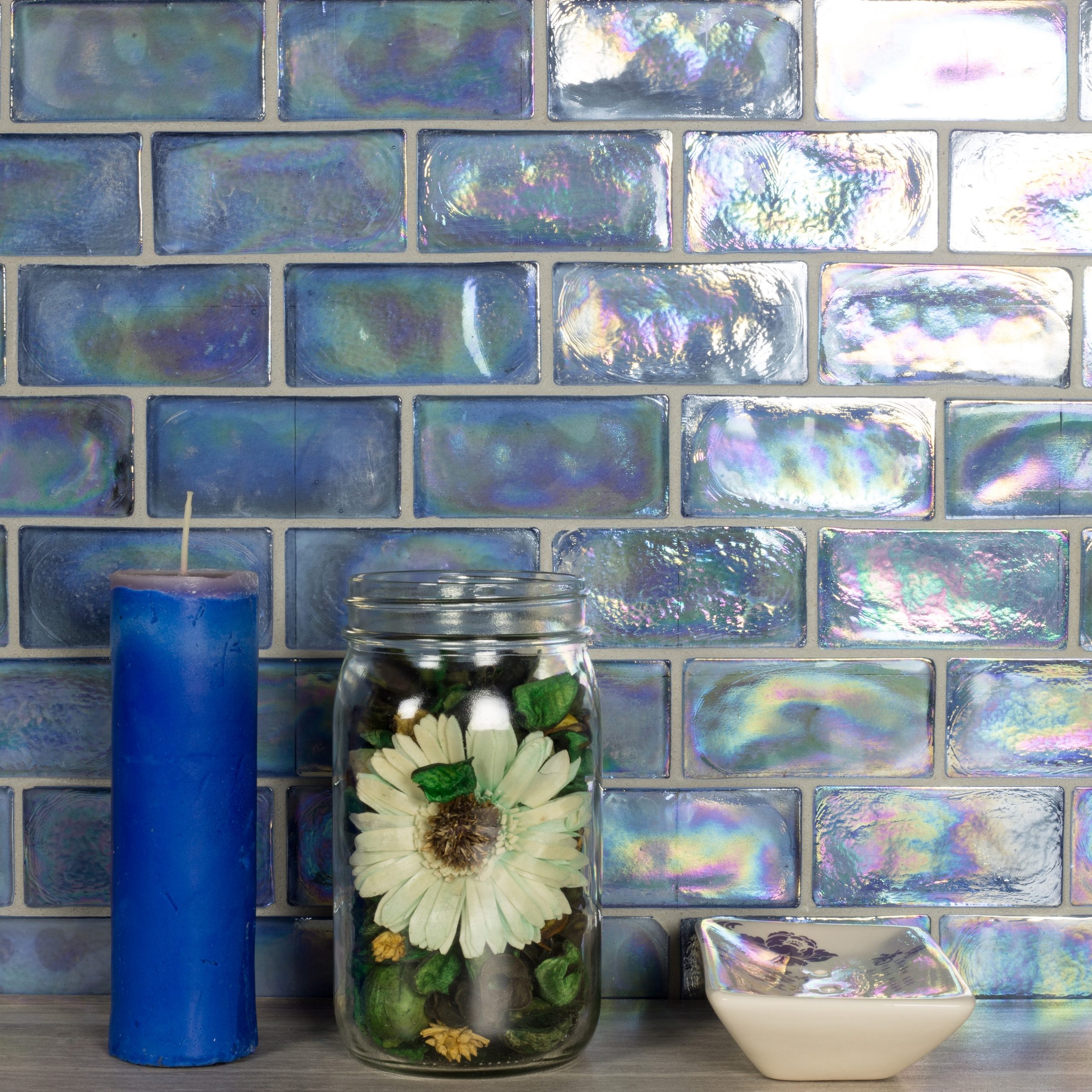 Atmosphere 2X4 Glossy Iridescent Blue Glass Loose Tile