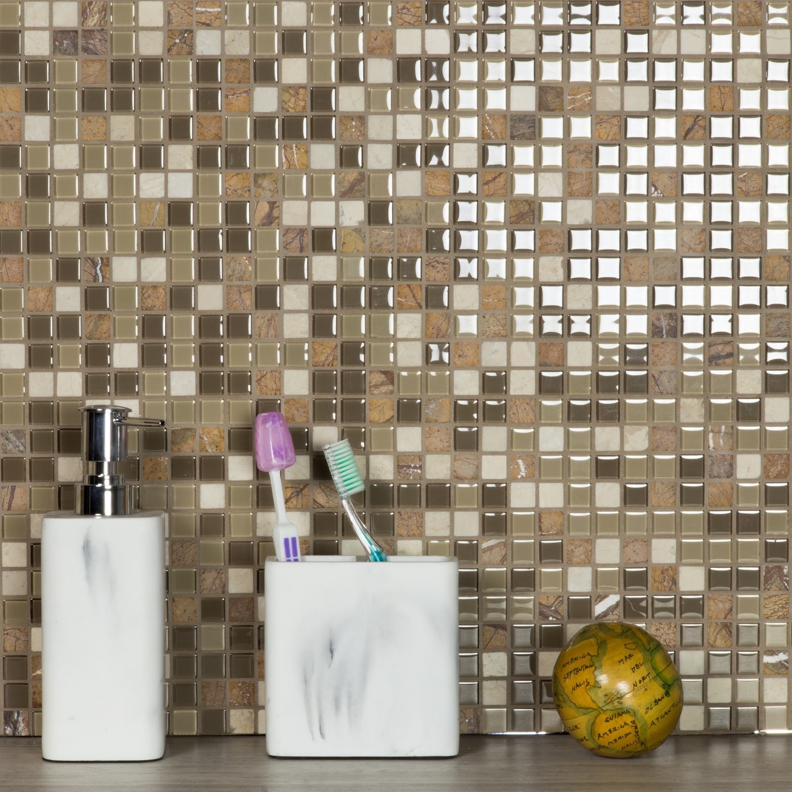 Crystal Stone 0.625X0.625 Multi Finish Taupe Glass and Stone Tile