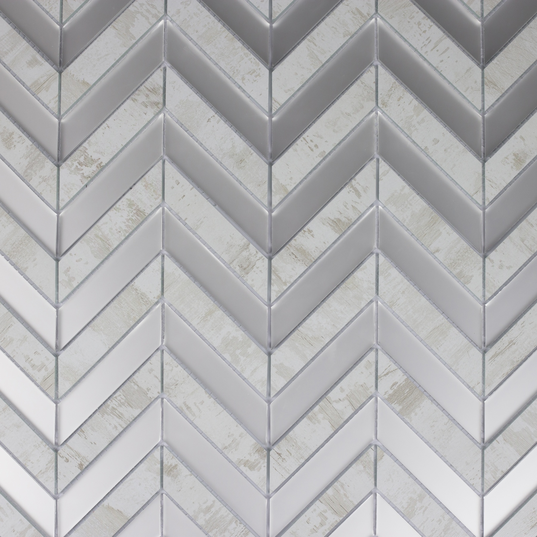 Musico 1X4 Multi Finish Gray Glass Herringbone Tile