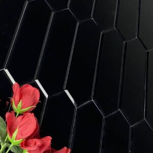 Reflections Peel & Stick 3 in. X 12 in. Glass Beveled Picket Tile in Glossy Black