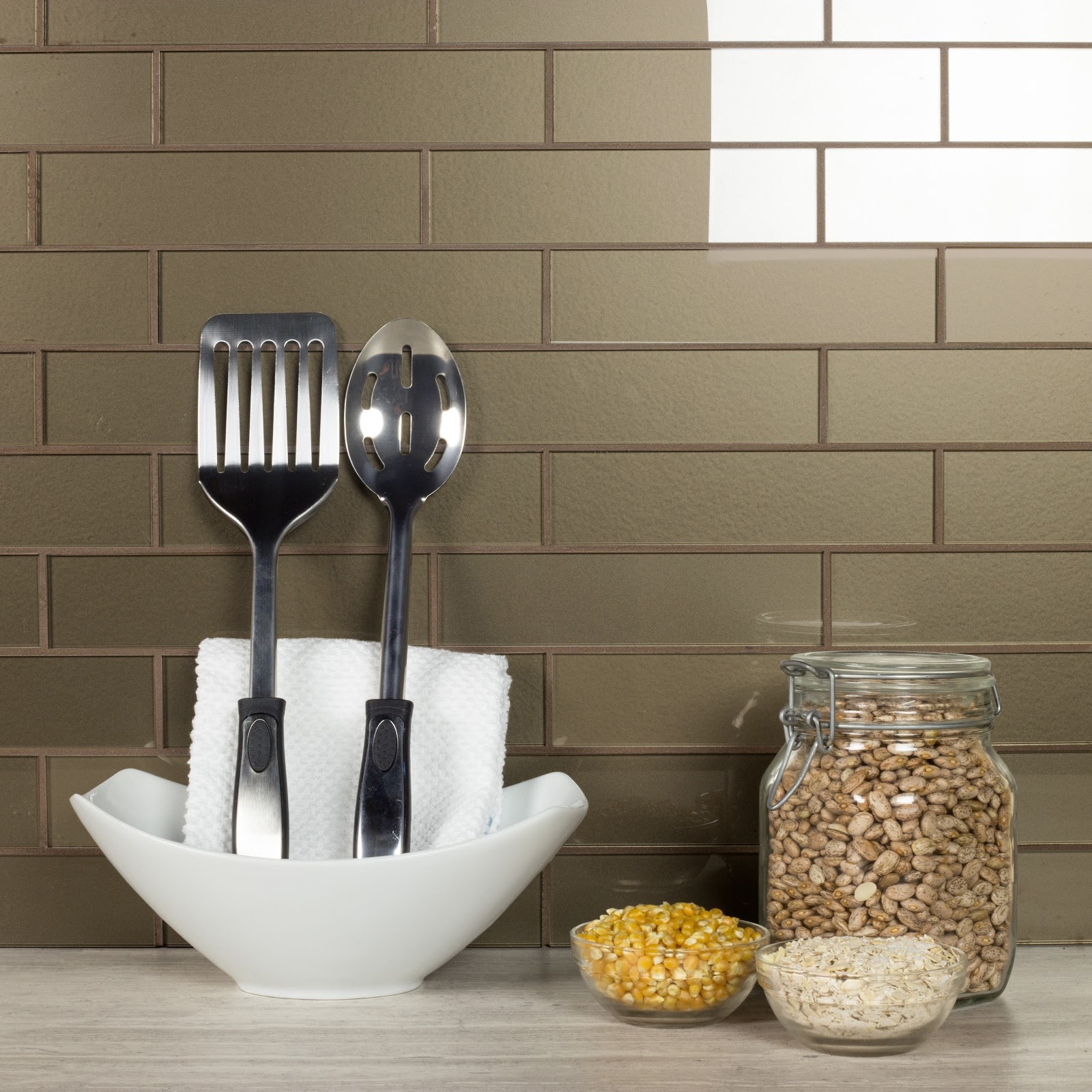 Forever 2X8 Glossy Bronze Reverse Beveled Glass Tile