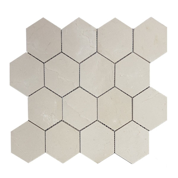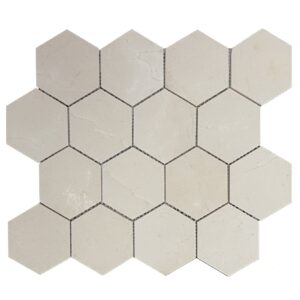 Crema Marfil 3″ Hexagon (0.95 sf/sheet) Honed Mosaic