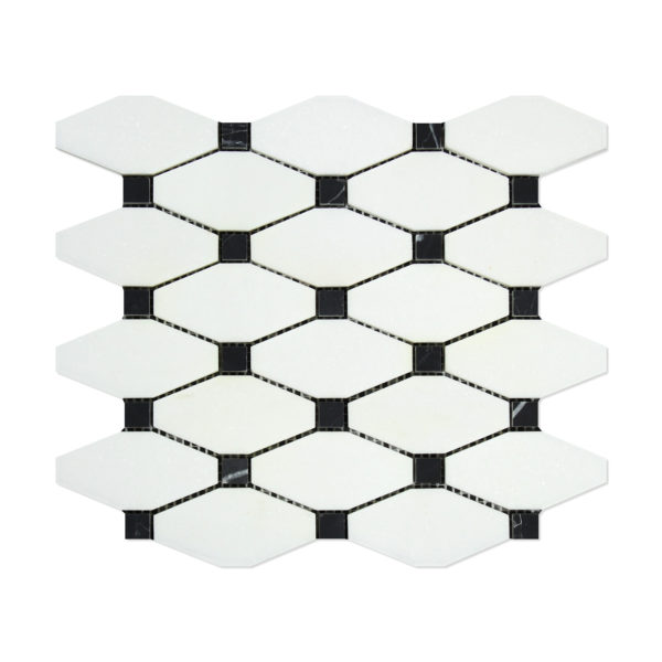 Carrara Elongated Octagon with Black Polished Mosaic
