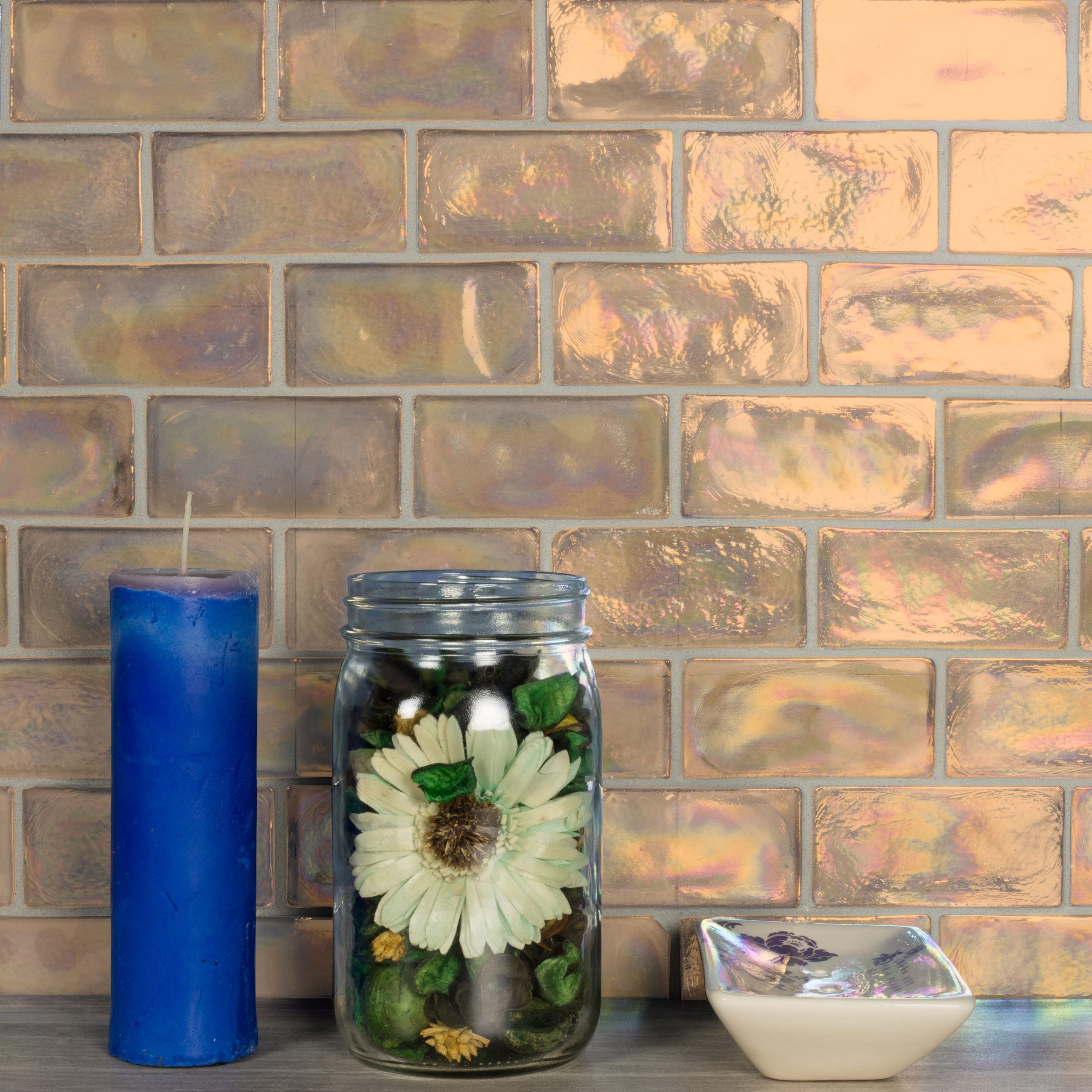 Atmosphere 2X8 Glossy Iridescent Orange Glass Tile