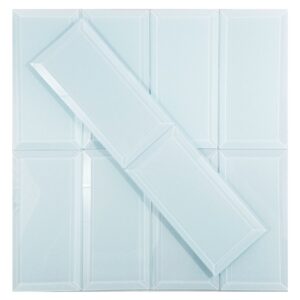 Frosted Elegance Peel & Stick 3X6 Glass Beveled Subway Tile in Matte White