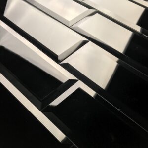 Reflections Peel & Stick 3 in. X 12 in. Glass Beveled Subway Tile in Glossy Black