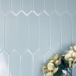 Frosted Elegance Peel and Stick 3 in. X 11.875 in. Glass Beveled Picket Tile in Glossy Blue