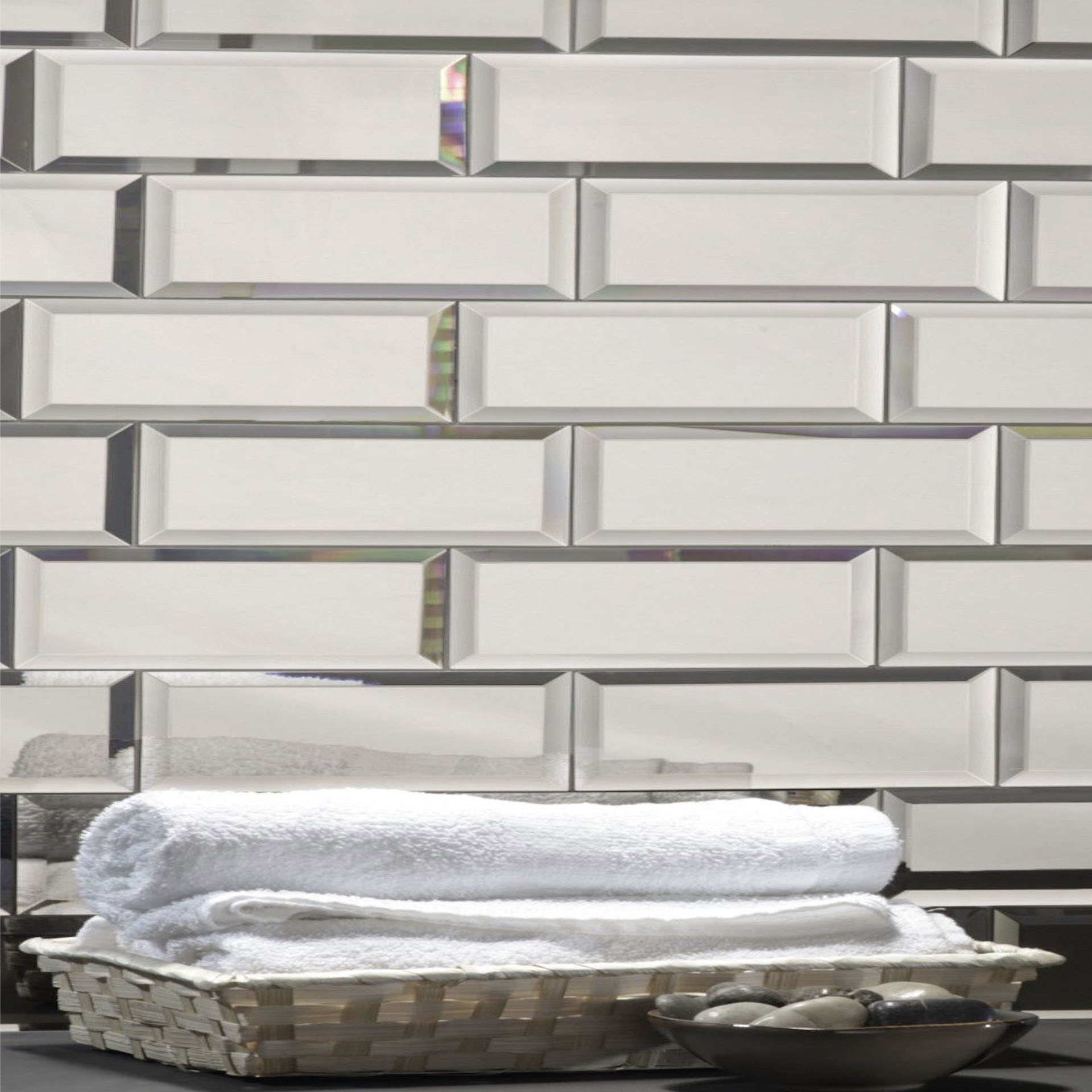 Reflections Peel & Stick 3″ X 12″ Glass Mirror Beveled Subway Tile in Silver