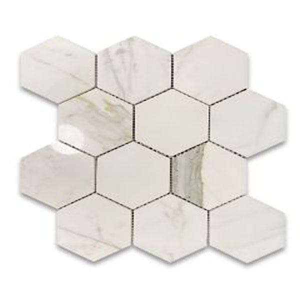 Calacatta Gold 5″ Hexagon Polished Mosaic