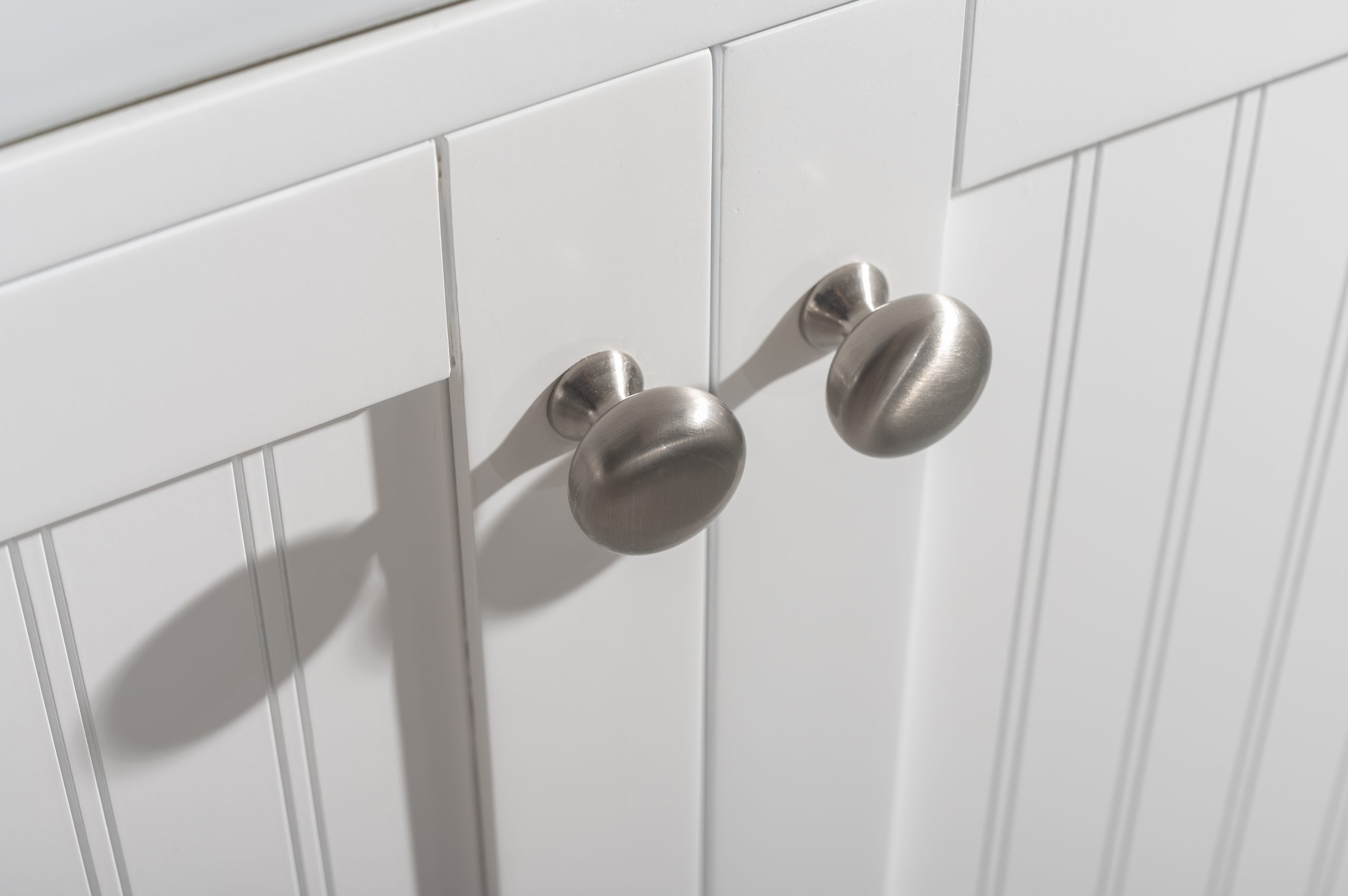 Multi-layer paint-finished vanity cabinets constructed from solid birch hardwood