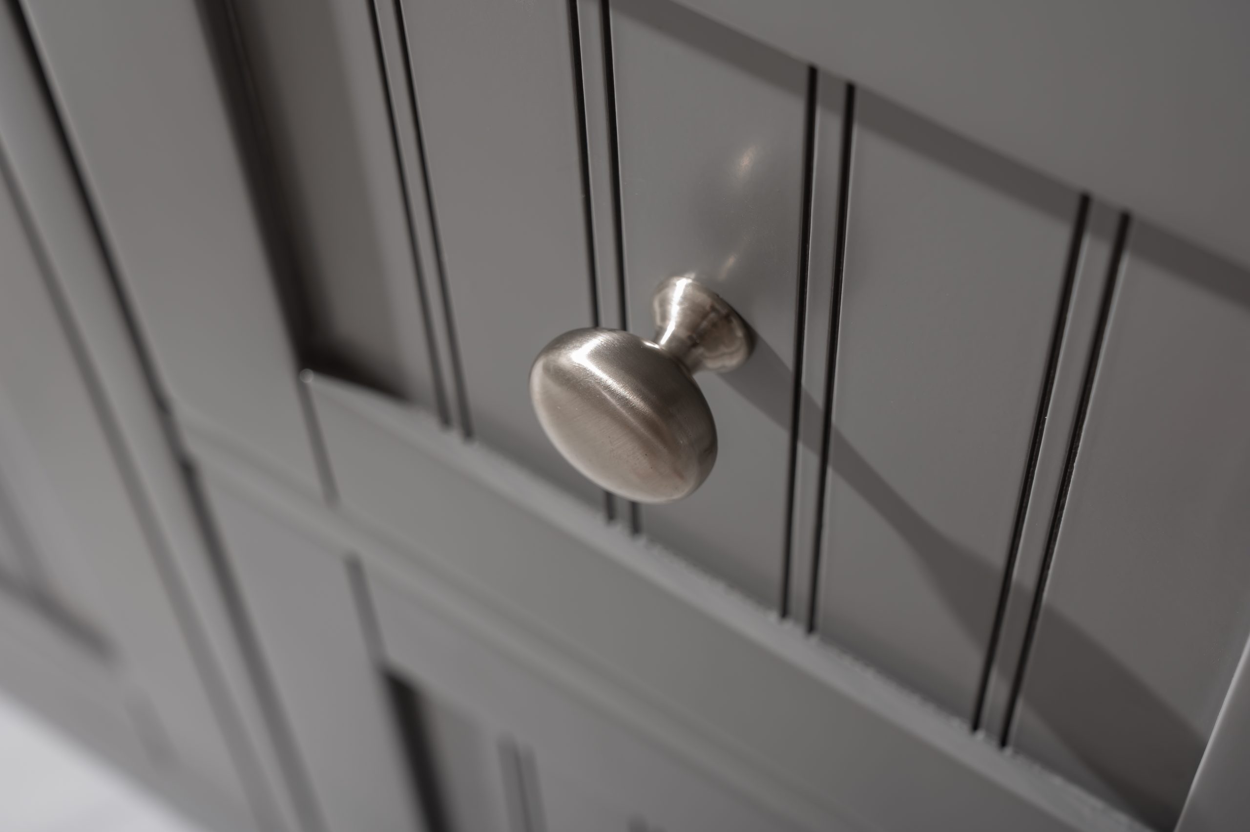 Multi-layer paint finished vanity cabinets constructed from solid birch hardwood
