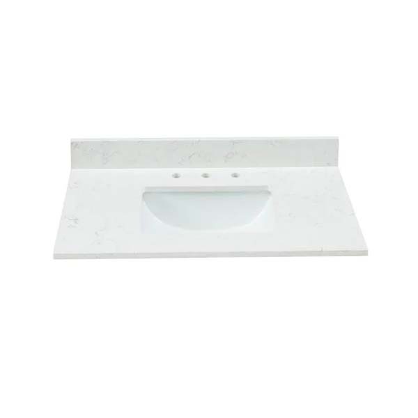 3/4″ Thick Seamless Carrara Marble Countertop with Pre-Drilled Holes to accommodate 8″ Wide Spread Faucets