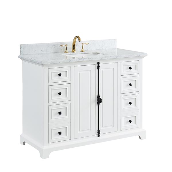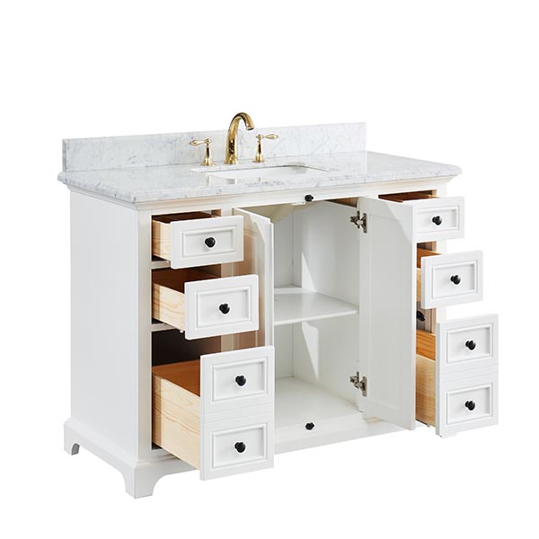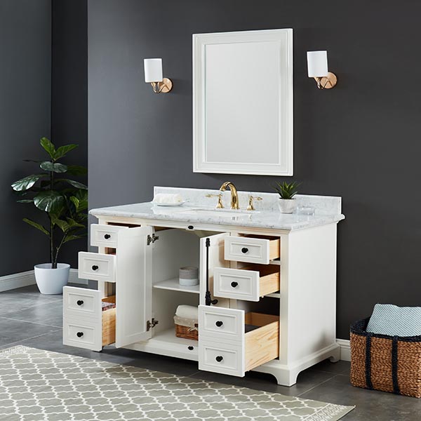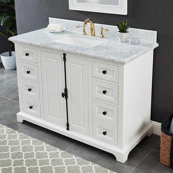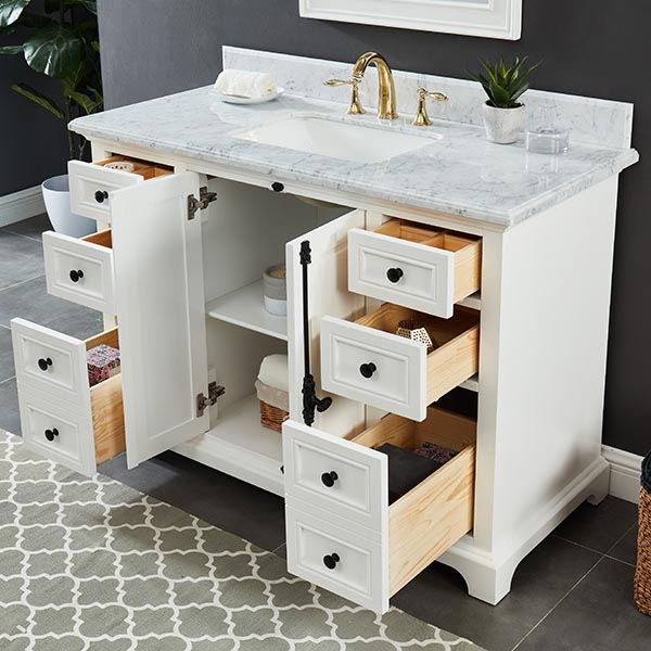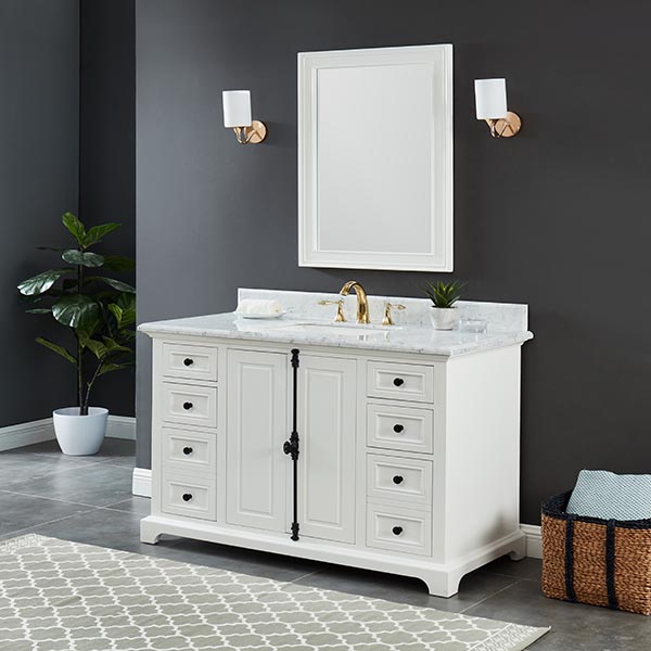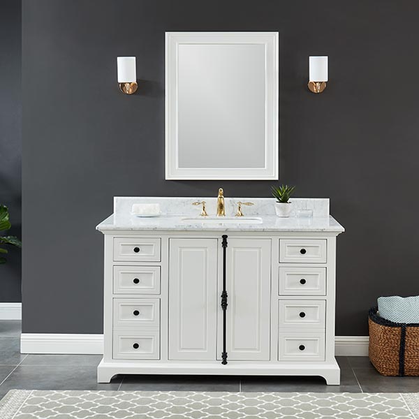 Icon Dove White Vanity 49″W x 22″ D x 34.5″ H •Furniture style with solid wood structure and fully assembled