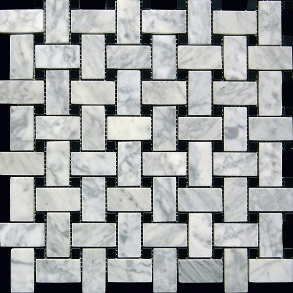 This premium natural stone basketweave marble mosaic tile is a popular choice for kitchen backsplash, bathroom wall tile, shower wall tile, accent wall tile, fireplace surround.