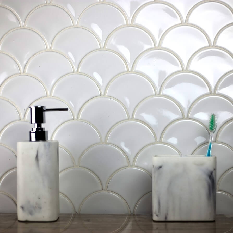 Monet 3.43 X 3.7 Glossy White Porcelain Fish Scale