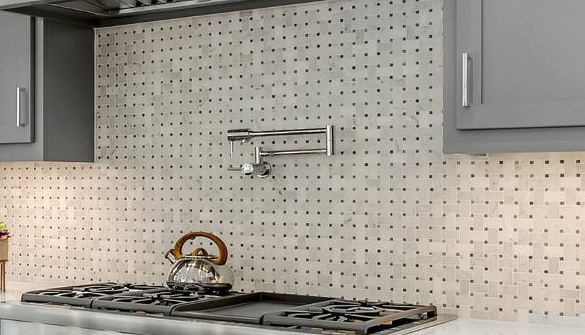 This premium natural stone basketweave marble mosaic tile is a popular choice for kitchen backsplash, bathroom wall tile, shower wall tile, accent wall tile, fireplace surround.