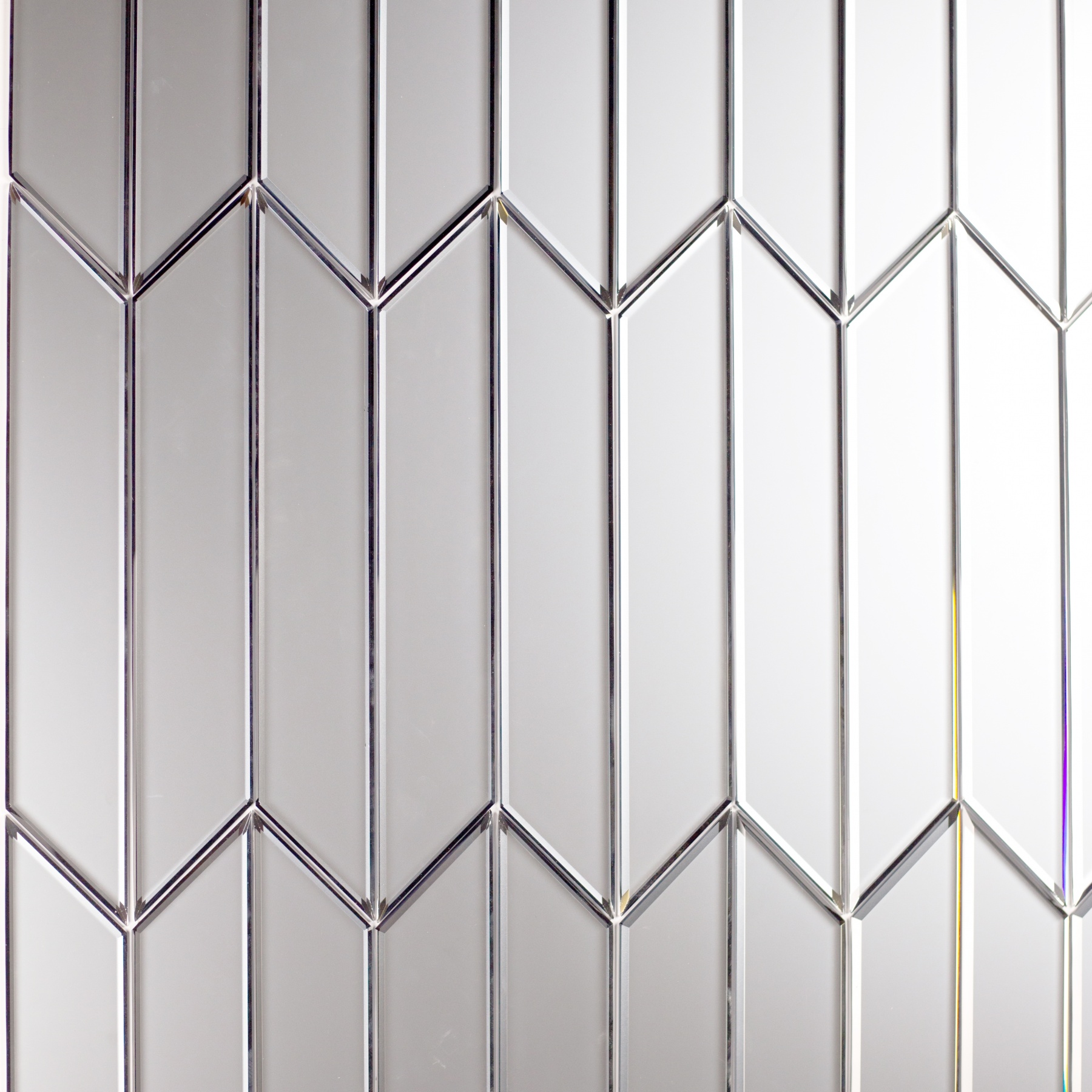 Reflections 3.75X11.75 Matte Silver Mirror Tile is a premium choice for homeowners and designers looking for high-end marble mosaic tile. Size: Reflections 3.75 X 11.75 Matte Silver Mirror Diamond Pair Backsplash Wall Tile. Make your next design project extraordinary with The Reflections Collection, our premier line of Mirror tiles. Every tile is carefully made and designed to exceed the highest standards of contemporary Mirror tiling. Offered in a variety of warm, inviting, and vibrant colors; these tiles are perfect for kitchen backsplashes, wall tiling, bathrooms, showers, fireplaces and a multitude of other interior / exterior applications. Installation Instructions: Install with Instaset Instant Adhesive Mastic (WHSPSA-ROLL) or Standard Install. Sold as pair. There are 54 pcs in a boX. Each pc is .3 sft. Each pair will be .6 sft. Total sq.ft in a boX 16.2.