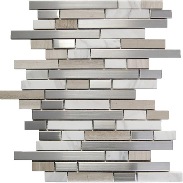 Stainless Steel And Stone Mix Mosaic is a premium choice for homeowners and designers looking for high-end marble mosaic tile. Size: Stainless Steel And All White Stone Mix Mosaic. This elegant Mosaic can be installed on Backsplash, Bathroom floor, Bathroom wall, Shower wall, Kitchen wall, Accent, Fireplace, Patio, Laundry room, Shower floor, Kitchen floor, Pool, Outdoor, Entryway etc.. Featuring elegant natural stone detailing, this tile is ideal for kitchen backsplashes, bathroom walls, shower surrounds, and decorative accents. 12″ x 12 ” Crafted for durability and timeless appeal, this luxury mosaic tile enhances both modern and classic interiors. Popular for wall and floor applications, it is one of the most searched marble mosaic tiles for upscale spaces.12″ x 12 ”