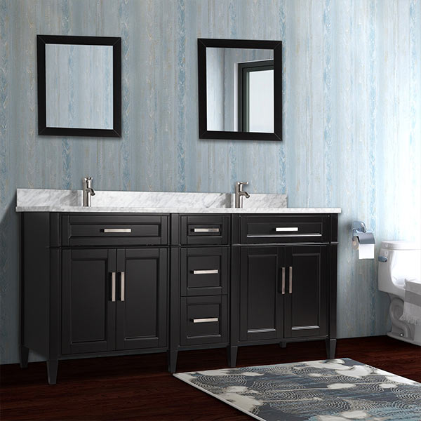 Vanity Art 72 Inch Double Sink Bathroom Vanity Set With Carrara Marble Vanity Top