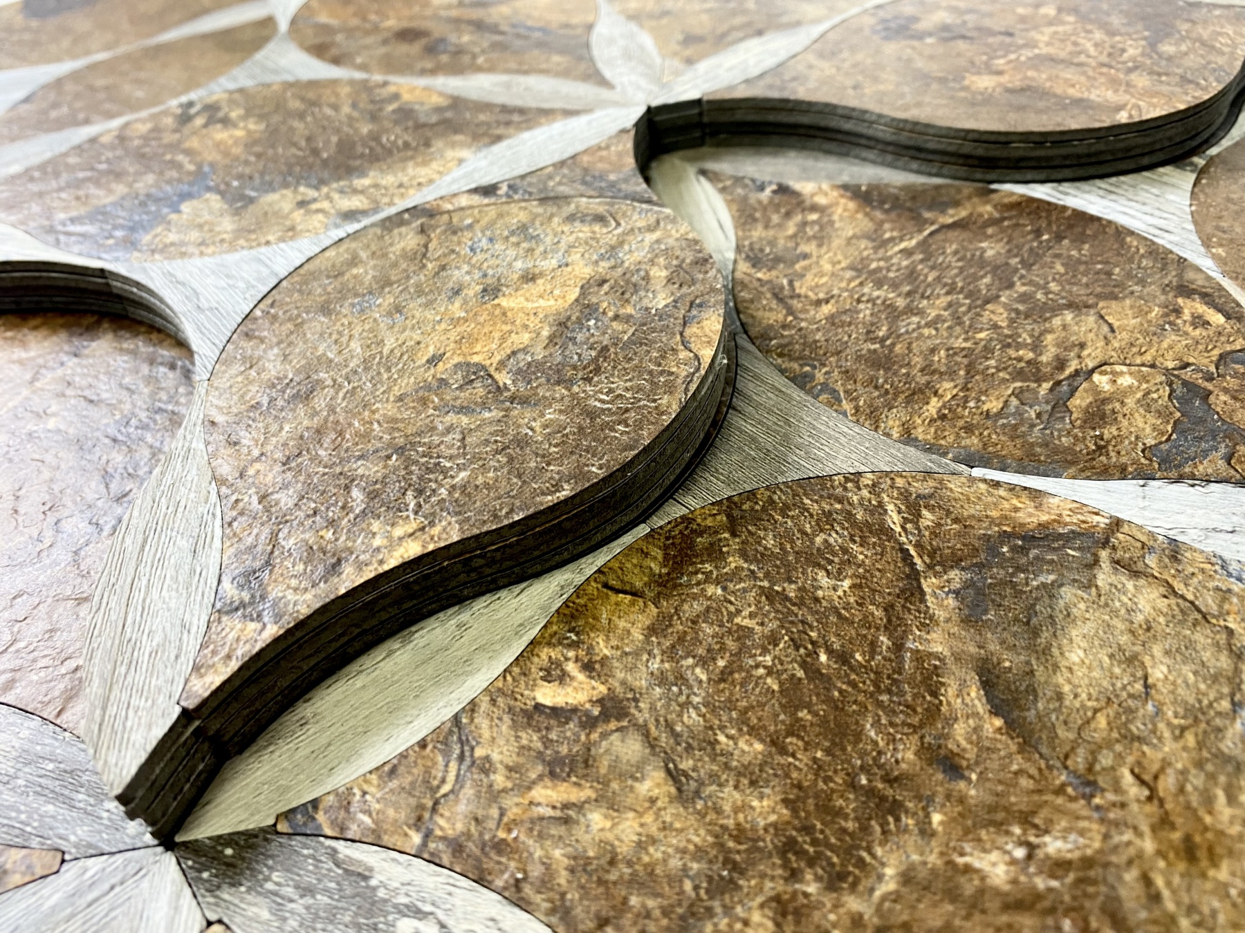 VersaTile Luxury Agate Stone & Wood 10.375 in. X 13.625 in. X 0.125 in. Vinyl Peel and Stick Tile is a premium choice for homeowners and designers looking for high-end marble mosaic tile. Size: The VersaTile LuXury Decor collection of tiles is the perfect choice for decorative pieces that you can install almost anywhere. It combines the appearance of the finest materials in the world with the durability of luXury vinyl tile for a marvelous look with unbelievable value. Unlimited design options and multi purpose, they create the perfect accent wall or custom room with entire wall and floor application. Made to last, VersaTiles are water, moisture, heat, scratch, chip, and stain resistant. Approved for most indoor wall and floor applications, our VersaTiles are the one stop shop option eliminating thinset mortar, grout, and installation costs.