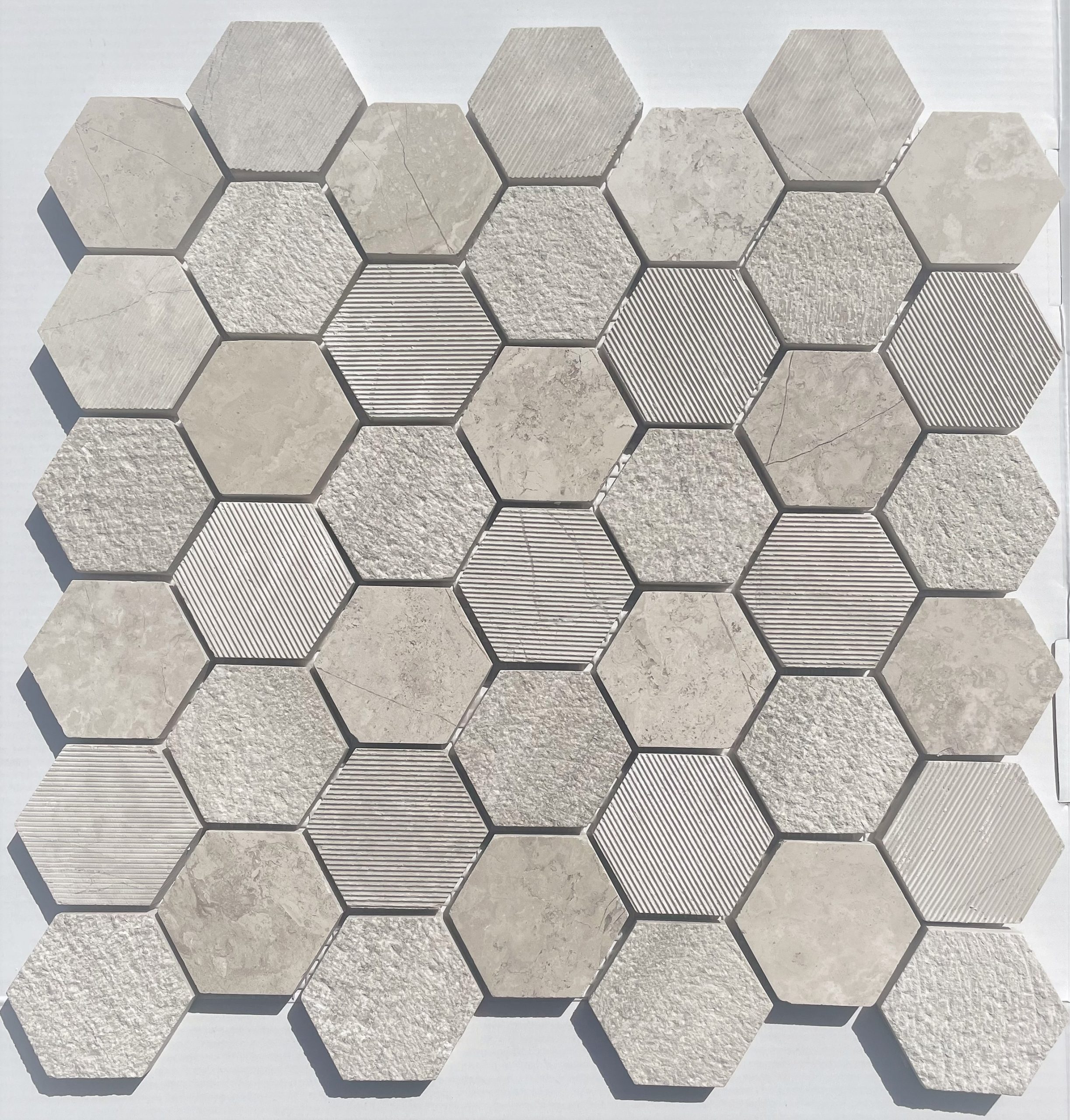 Key Features: natural marble mosaic look, decorative pattern for premium spaces, suitable for walls and selected light-duty floor applications, ideal for kitchen and bathroom upgrades, and timeless stone character.